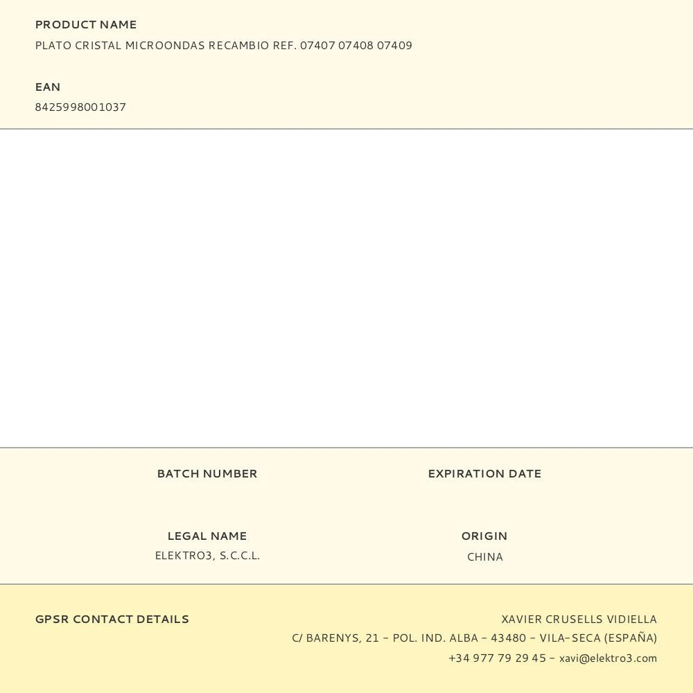 PRATO ROTATIVO DE VIDRO SOBRESSALENTE REF. 07407 07408 07409