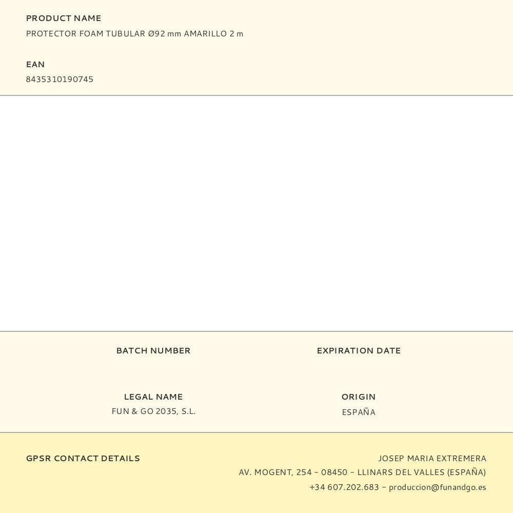 PROTECTOR DE ESPUMA TUBULAR Ø92MM AMARELO 2M