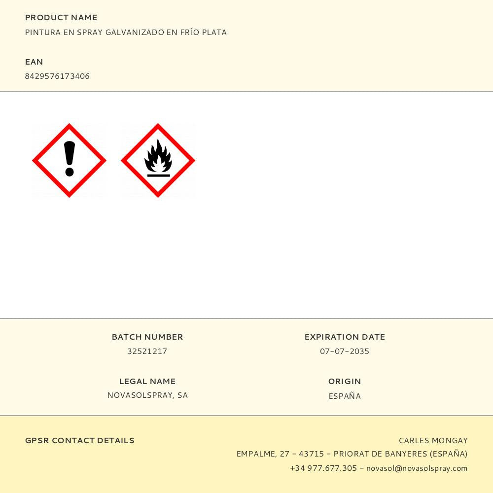 Spray galvanizado em frio prata. é um aerosol anti-corrosivo à base de alumínio e zinco. elevada proteção antioxidante sobre superfícies metálicas. acabamento liso, uniforme e brilhante. excelente resistência a intempérie. secagem rápida.
