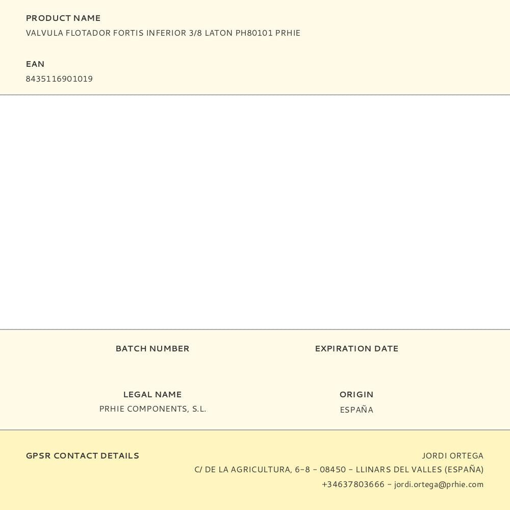 VÁLVULA FLUTUADOR FORTIS INFERIOR 3/8 LATÃO PH80101 PRHIE