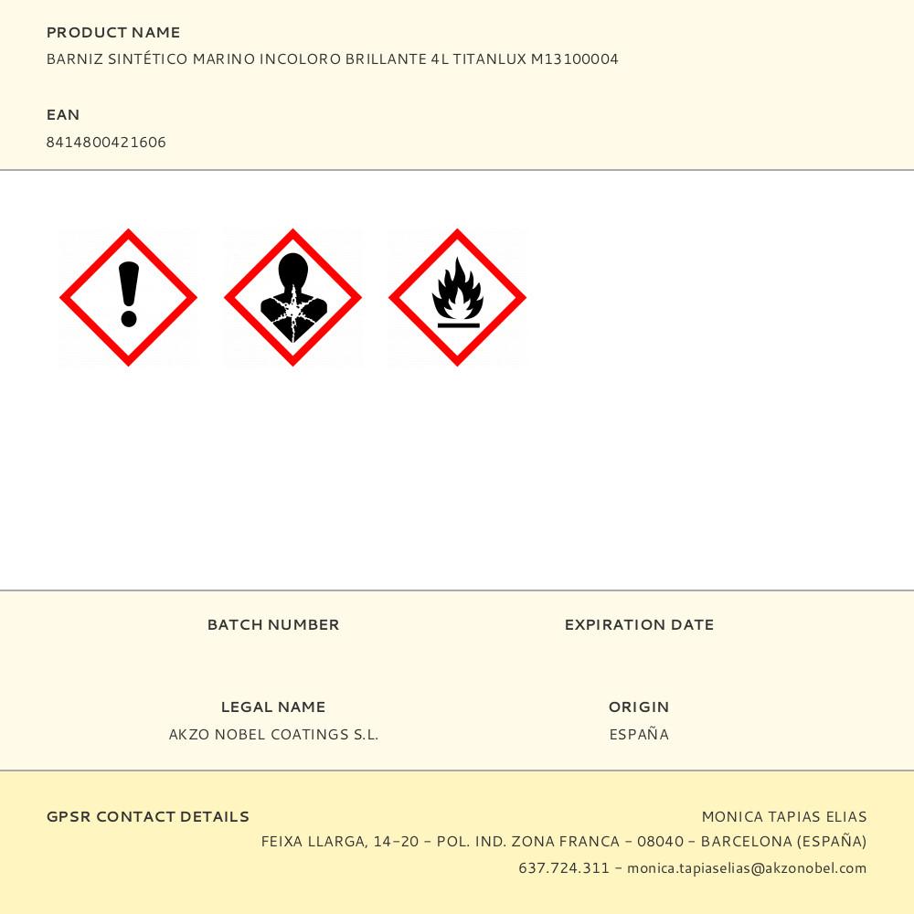 VERNIZ SINTÉTICO MARINHO BRILHANTE INCOLOR 4L TITANLUX M13100004