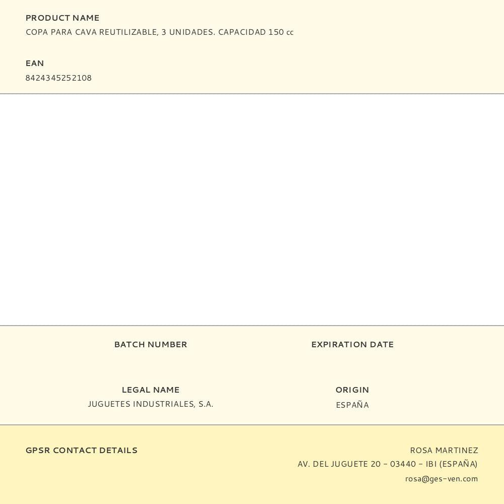 VIDRO CAVA REUTILIZÁVEL, 3 UNIDADES. CAPACIDADE 150 CC