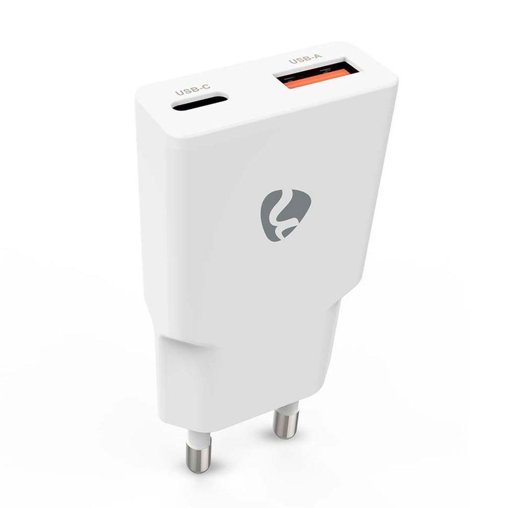• Possui uma porta USB-C™ Power Delivery (30 watts) e uma porta USB-A Quick Charge™ 3.0 (18 watts).