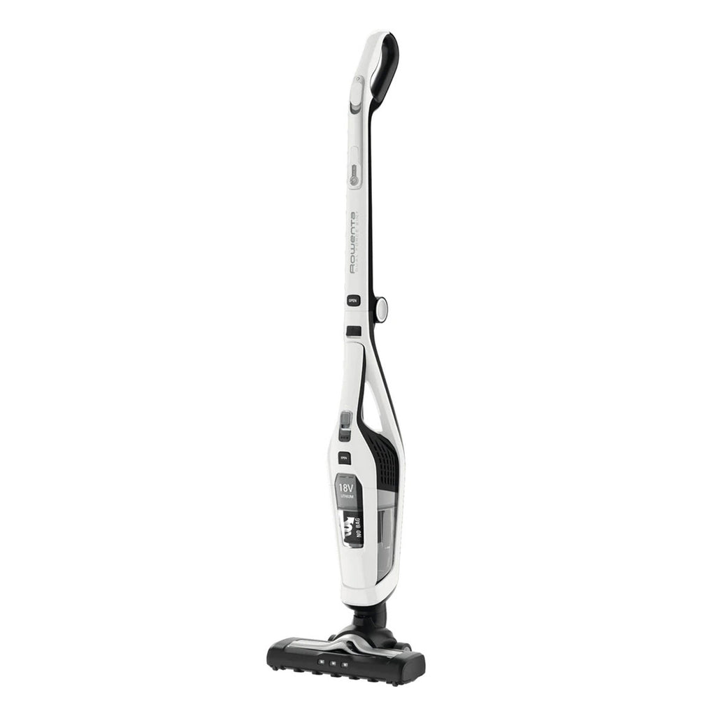 Rowenta Dual Force 2in1 RH6737. Tipo de coletor de pó: Sem bolsa, Cor do produto: Branco, Capacidade de pó: 0,6 l. Tipo de limpeza: Seco, Método de separação do lixo: Ciclónico, Nível de ruído: 79 dB. Fonte de alimentação: Bateria, Tecnologia da bateria: Ião-lítio, Voltagem da bateria: 18 V. Comprimento da embalagem: 200 mm, Profundidade da embalagem: 325 mm, Altura da embalagem: 610 mm. Largura: 178 mm, Profundidade: 271 mm, Altura: 1130 mm