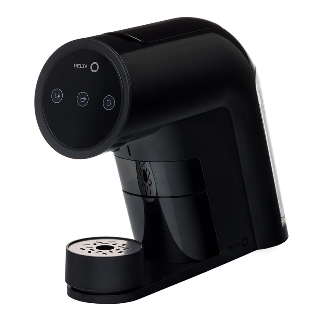 Máquina de café Delta Q ICONIQ na cor preta. Esta máquina de café em cápsulas combina um design icónico e minimalista com um ecrã touch intuitivo.