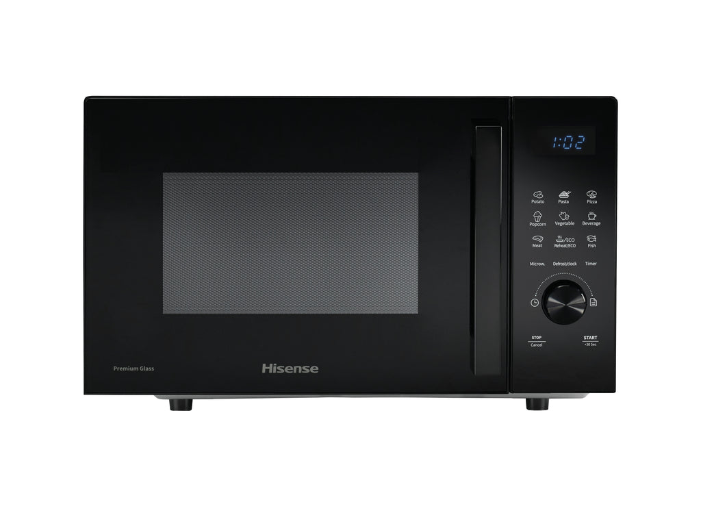 Hisense H23MOBSD1H. Local de colocação: Balcão, Tipo de produto: Apenas micro-ondas, Capacidade interna: 23 l, Potência do microondas: 800 W, Visor incorporado, Tipo de controlo: Rotativo, Toque, Cor do produto: Preto