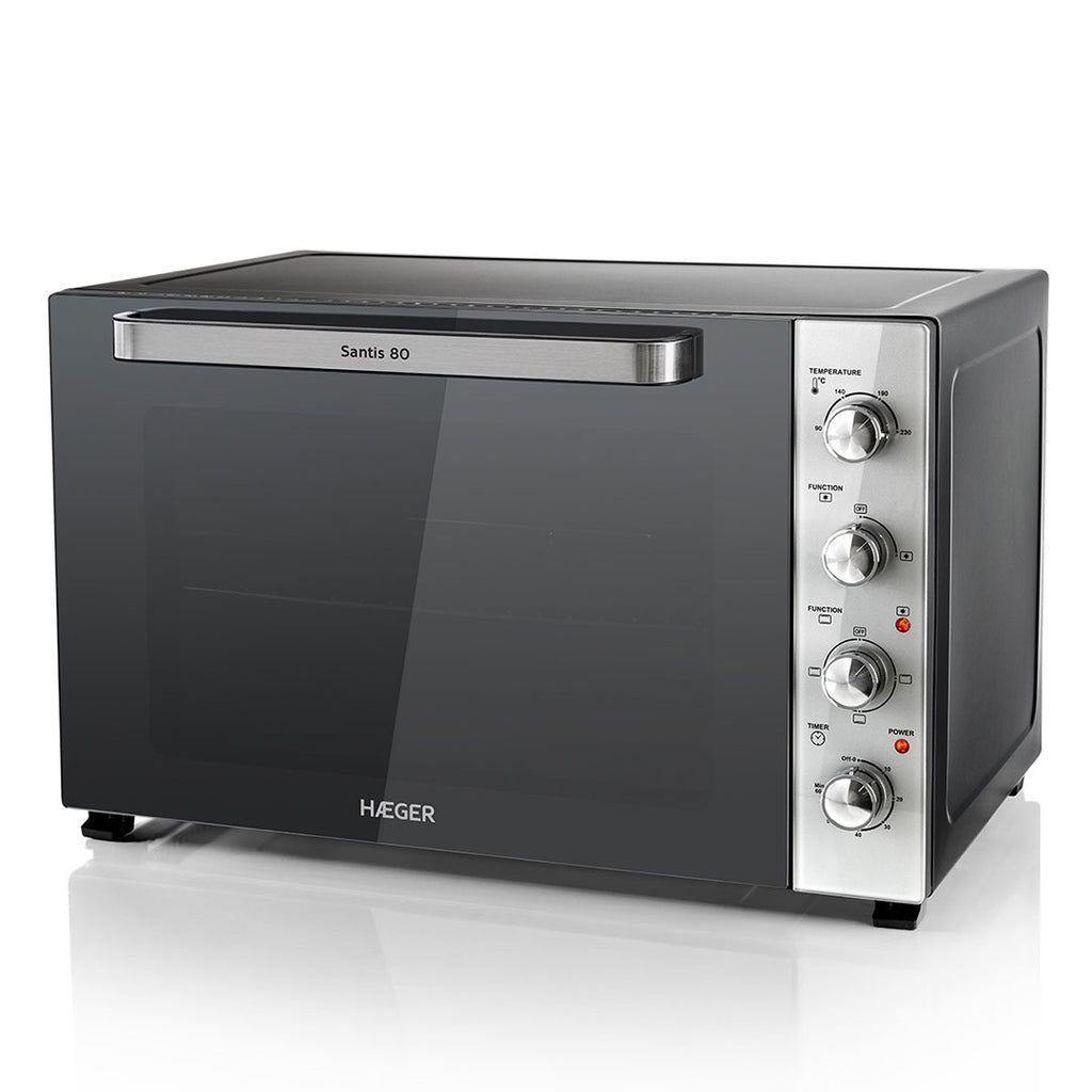 HAEGER SANTIS 80 * Forno 80 LO Forno Elétrico HAEGER Santis 80 é a escolha ideal para quem valoriza um forno espaçoso, versátil e de elevada potência. Com uma capacidade de 80 litros, função de convecção, cinco posições de aquecimento e 2400W de potência, garante um desempenho excecional para assar, grelhar ou aquecer com precisão.