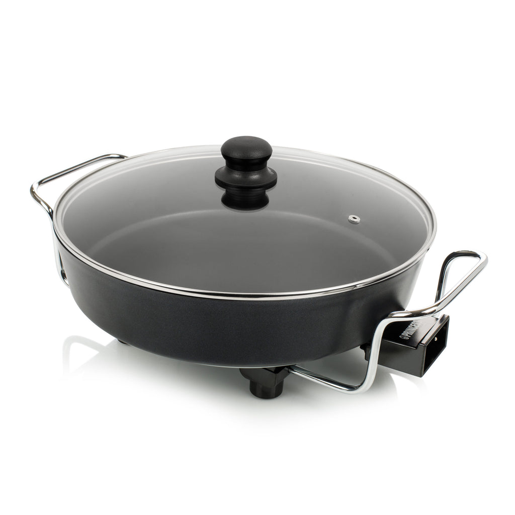 Princess 162367. Forma: Redondo, Cor do produto: Preto, Material do corpo do produto: Alumínio. Potência: 1800 W, Voltagem de entrada AC: 220 - 240 V, Frequência de entrada AC: 50 / 60 Hz. Diâmetro: 35 cm, Largura: 470 mm, Profundidade: 465 mm. Material da espátula: Madeira. Quantidade por recipiente intermodal (20 pés): 672 unidade(s), Quantidade por recipiente intermodal (40 pés): 1344 unidade(s), Quantidade por contentor intermodal (40ft, HC): 1680 unidade(s)