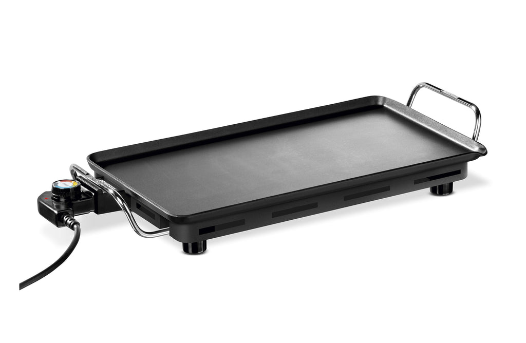 Princess 102300. Tipo de unidade: Tampo da mesa, Material da superfície superior: Alumínio, Cor do produto: Preto. Tipo de controlo: Rotativo, Espessura da placa da grelha: 2,9 mm. Potência: 2000 W, Voltagem de entrada AC: 220 - 240 V, Frequência de entrada AC: 50 / 60 Hz. Material da espátula: Madeira. Largura: 604 mm, Profundidade: 265 mm, Altura: 80 mm