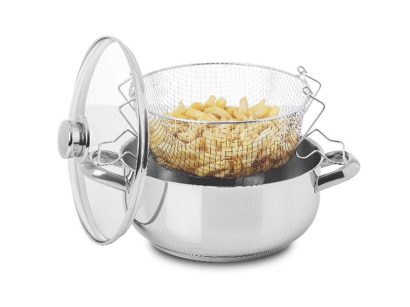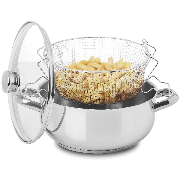 Composto por Caçarola fritadeira com asas 24 com cesto e Tampa de vidro