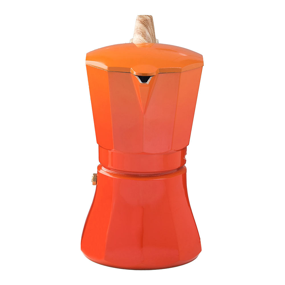 Cafeteira em alumínio com 9 chávenas, modelo ´´petra´´, cor laranja adequado para indução, gás, vidro e elétrico cabo de baquelite imitação de madeira toque suave certificação de válvula de segurança