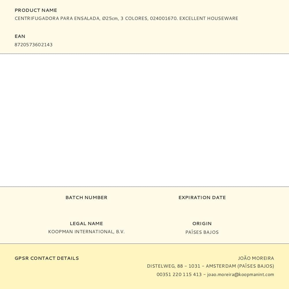 CENTRIFUGADOR VERDURAS KOOPMAN 024001670