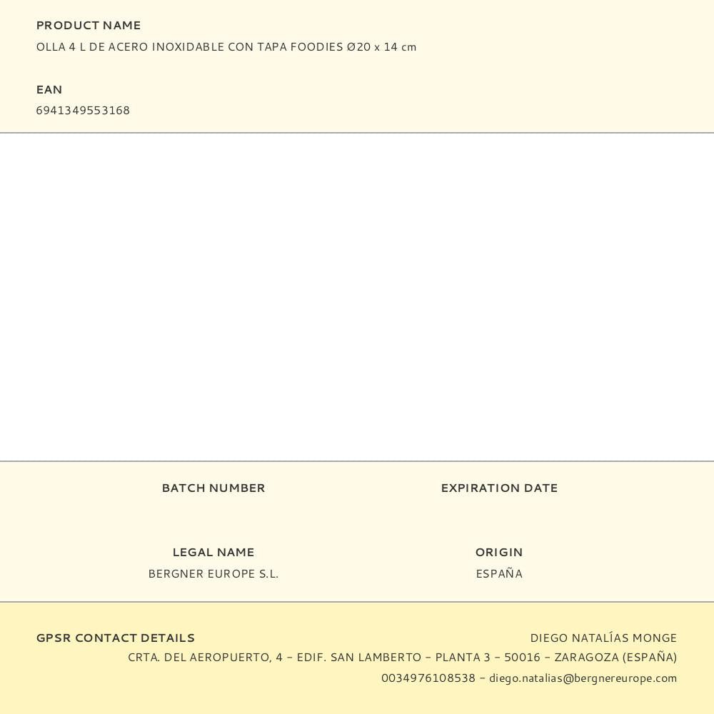 Panela ø20x14cm 4l inox com tampa foodies bgmp-1505-bk masterpro. esta panela de masterpro foodies mede ø20x14cm e tem uma capacidade de 4l. está fabricada em inox 18/10 cor cinzento, com qualidade acabamento duplo brilhante/mate de aspeto elegante, profissional e de alto rendimento. graças ao seu design, estrutura e materiais, esta panela é adequada para os cozinhados mais exigentes, apta para indução. inclui tampa de vidro que lhe permite ver o processo de cozimento dos alimentos, sem ter que destapar a panela. outra vantagem deste artigo é que a tampa contém um escorregdor duplo, deste modo não necessita coadores e poupa tempo durante o processo. no interior existem uma escala de medição para evitar erros de cálculo de tempo