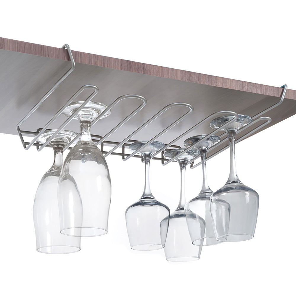 Prateleira para pendurar os copos de pé alto ´´my-crystal´´ dimensões: 38x26x7cm (largura/profundidade/altura). com capacidade para 12/16 copos de pé alto. revestimento polytherm metallic. garantia de 5 anos