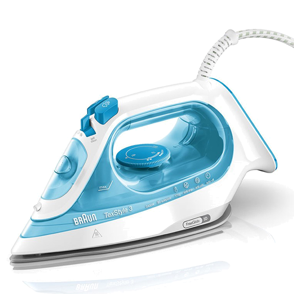 Braun TexStyle 3 Steam Iron SI 3053 Blue. Tipo de base de ferro: Base de cerâmica, Comprimento do fio: 2 m, Cor do produto: Azul. Potência: 2400 W
