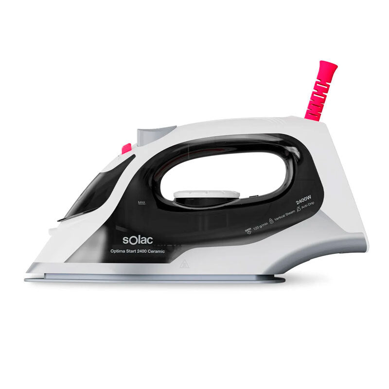 nCaracterísticasnn Plancha Vapor n Potencia 2.400W n Vapor continuo: 30 gmin - Golpe de vapor: 120 gmin n Regulador de vapor y temperatura n Vapor vertical n Punta de precisión n Función spray n Sistema antical n Suela cerámica n Sistema antigoteo n Planchado en seco n Cable 1,8 m n Accesorio: vaso de llenado n Dimensiones (ancho x alto x fondo): 280 x 136 x 118 mm n Una plancha de vapor ideal para planchar ocasionalmente: Optima Start 2400 Ceramic es la plancha perfecta para todo aquel que planche ocasionalmente o que usen la plancha de manera periódica pero que valore sobre todo la simplicidad y la facilidad de uso. Consigue unos resultados perfectos sin complicaciones, sin preajustes, programas o funciones complejas. Solo necesitas enchufar y empezar a planchar. n Potencia perfecta y golpe de vapor: Tiene una potencia de 2400W para que puedas eliminar cualquier arruga de una sola pasada. Gracias a su golpe de vapor de 120 gr y a su vapor continuo de 30 gmin conseguirás alisar incluso las arrugas más rebeldes. Si lo prefieres también podrás planchar en seco sin vapor aquellas prendas que lo necesiten. n Suela cerámica de gran deslizamiento: La suela con revestimiento cerámico de la plancha de vapor Optima Start 2400 Ceramic te garantiza un deslizamiento perfecto, respetando al máximo todas tus prendas, sin enganches ni tirones gracias a sus cantos redondeados. La plancha se calienta de manera homogénea muy rápidamente. n Planchado vertical: Para dar el toque final a tus prendas o eliminar los olores, puedes usar la posición de planchado vertical activando el vapor. El vapor caliente penetra en los tejidos y neutraliza las partículas que causan los malos olores, a la vez que alisa las arrugas. Una manera perfecta de planchar directamente en la percha y darle ese último retoque a tus prendas antes de salir de casa.nn