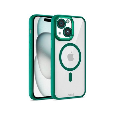FUNDA COOL IPHONE 15 MAGNETICA VERDE TRANSPARENTE BORDE VERDE COMPAT C.MAGNETICO