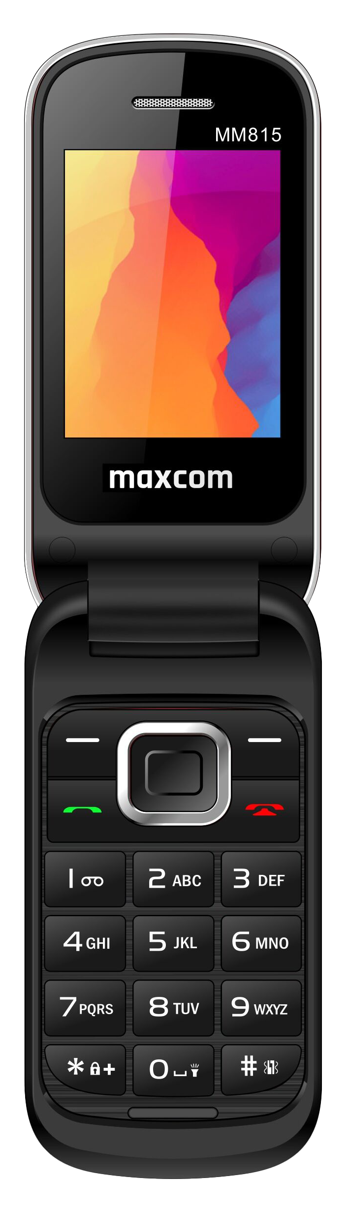 MaxCom MM815. Forma: Flip. Capacidade cartão SIM: Dual SIM. Tamanho do ecrã na diagonal: 6,1 cm (2.4"), Resolução: 240 x 320 pixels. Resolução da câmara traseira (numérico): 0,3 MP. Rádio FM. Capacidade da bateria: 1000 mAh. Peso: 90 g. Cor do produto: Cinzento