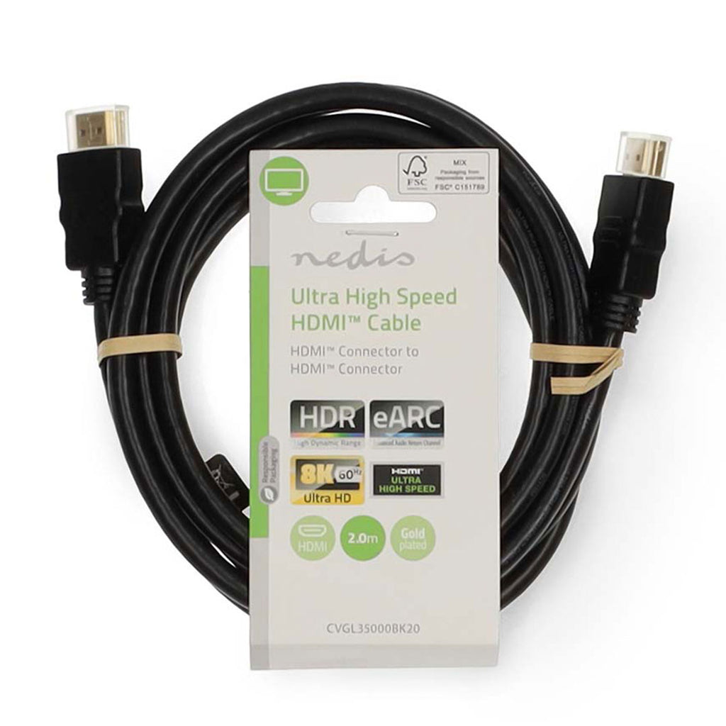 Conector HDMI™ | Conector HDMI™ | 8K a 60 Hz | 48 Gbps | 2,00 m | Redondo | 6,5 mm | Preto | Etiqueta