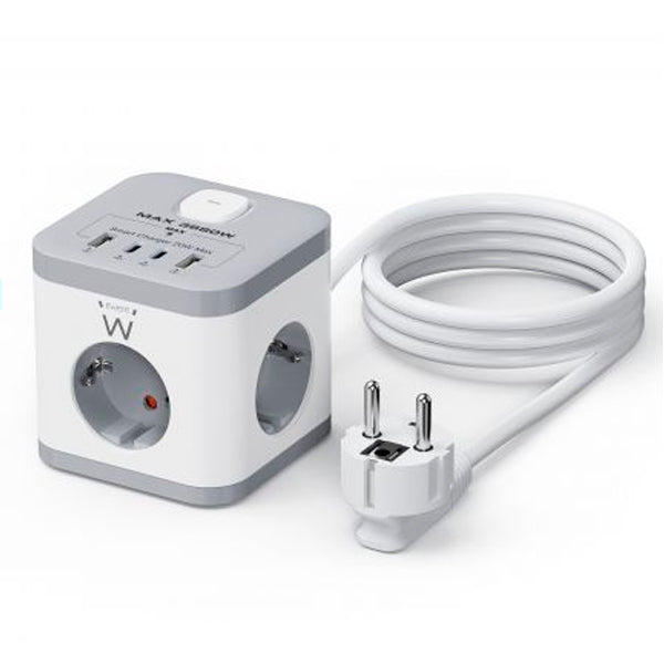 EWENT EXTENSA0 ELETRICA 3 TOMADAS CUBICA SHUKO 2XUSB-C 2XUSB 2MT