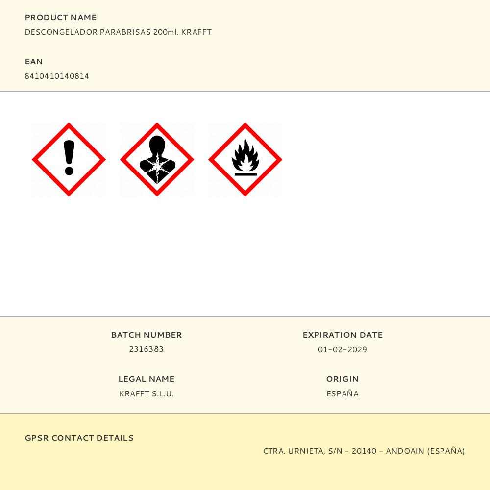 DESCONGELAÇÃO DO PARA-BRISA 200ML. KRAFFT