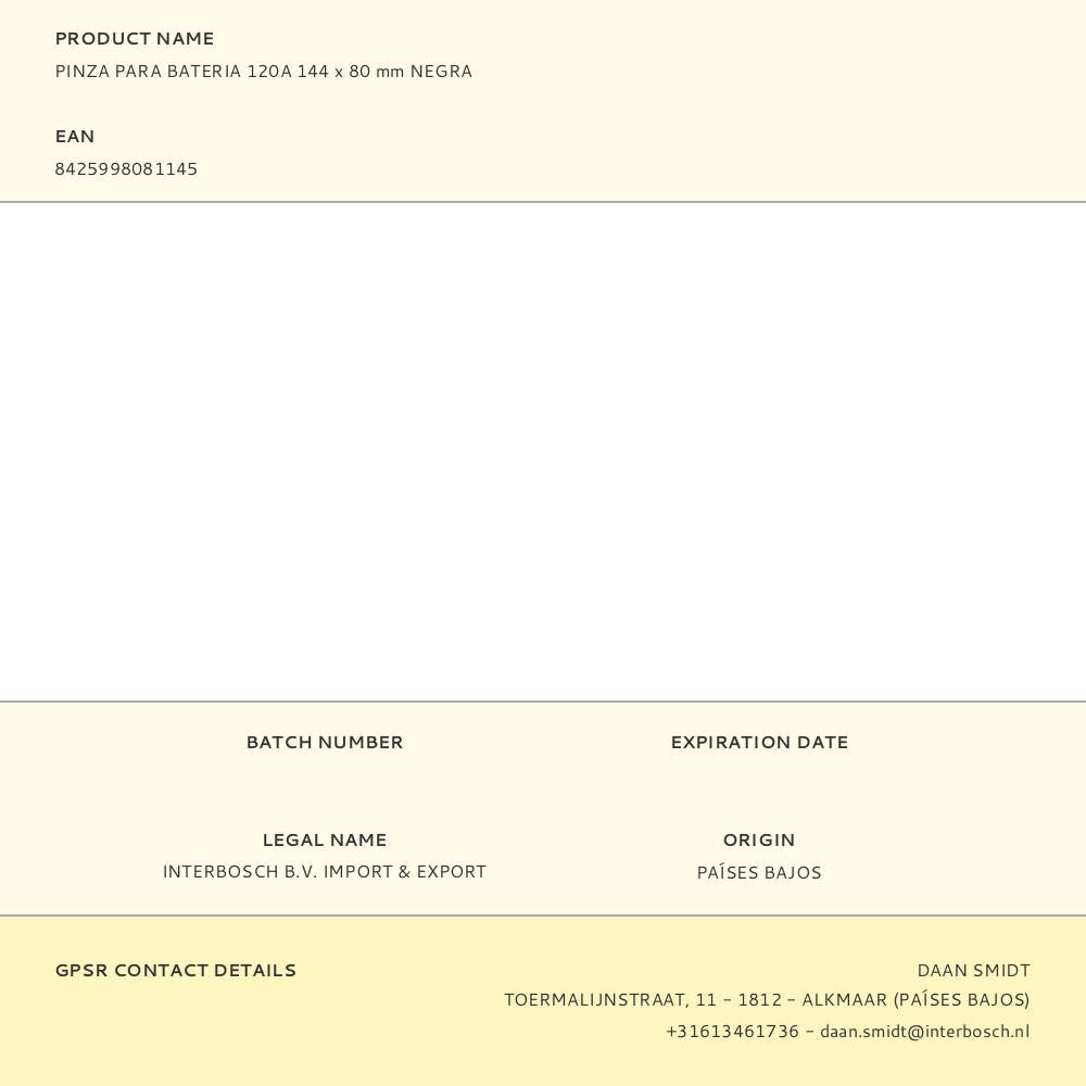 PINÇAS PARA CABO DE BATERIA 120A 144X80MM PRETA