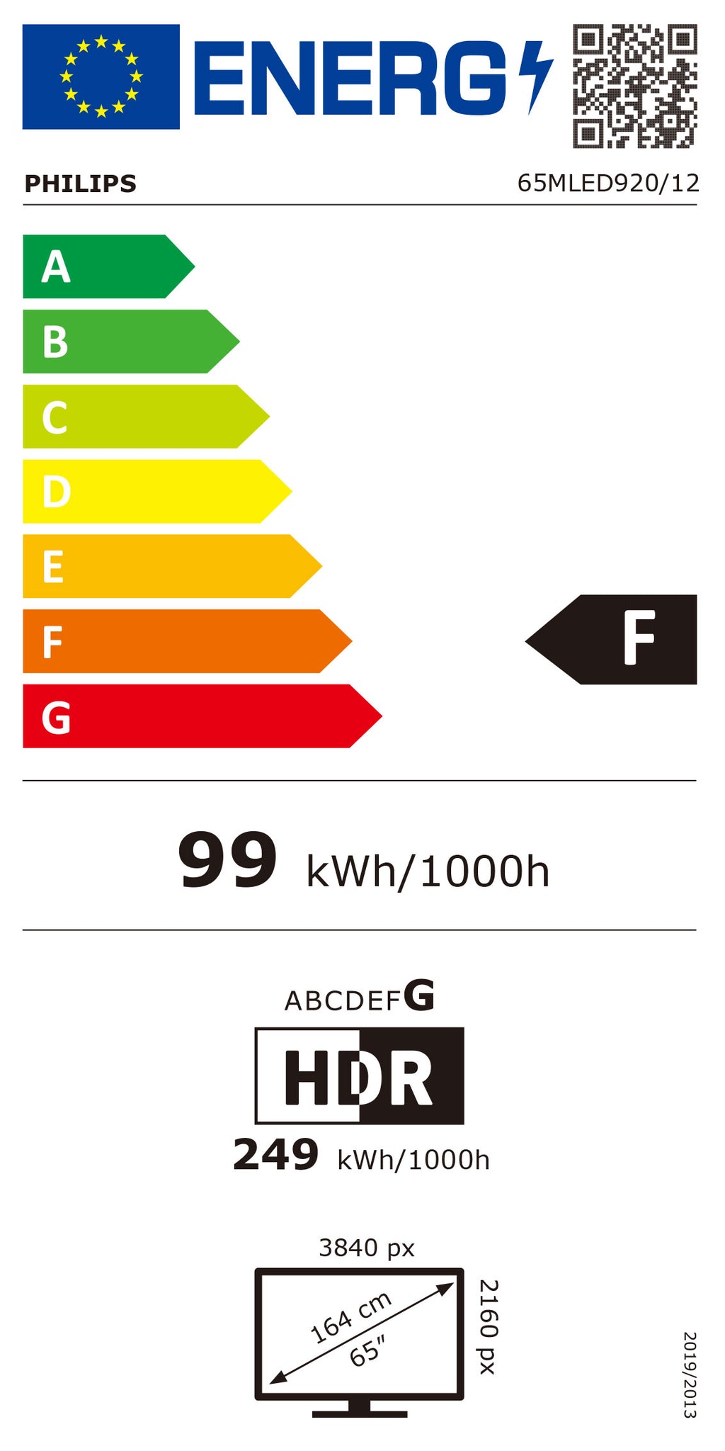Consumo de energia no modo ligado para HDR: 249 Kwh1000 h