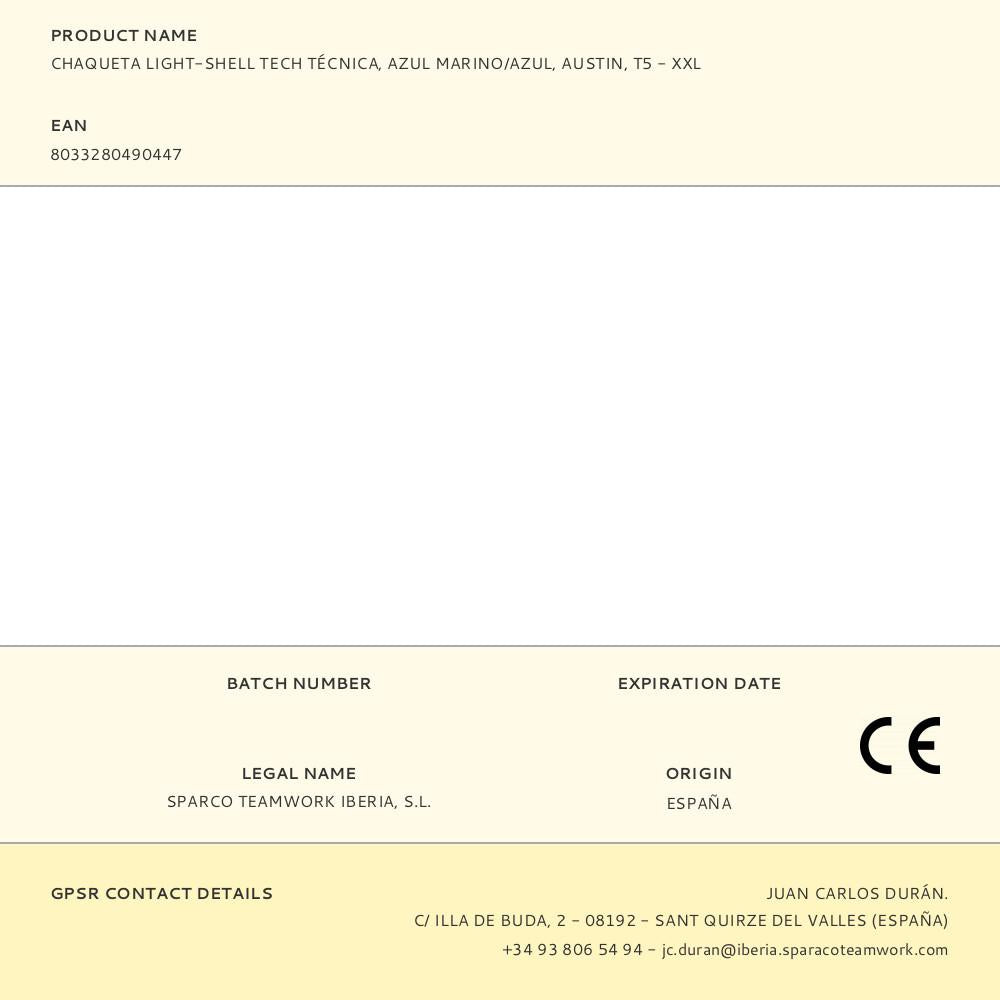 Casaco light-shell tech técnico, azul-marinho/azul-austin, t5 - xxl casaco corta-vento, mangas reforçadas, inserções antiabrasão, faixas refletivas, 90% nylon e 10% elastano