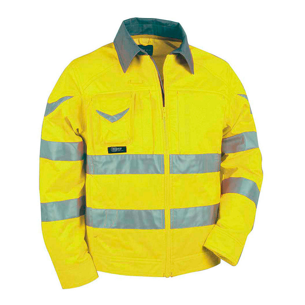 Casaco warning tamanho 58. bolso deanteiros amplos, bandas refletantes 3m e scotchlite. inclui bolso para telemovel com tecido isolante e-ward, bolsos superiores frontais, cintura e punhos ajustaveis, corte ergonomico das mangas, mangas com corte ergonomico, bolso interior duplo, orificio para passar os auriculares. composição: 60% poliester. 290g/m² . cor amarelo. ideal para agricultura, ferrocarris, industria logistica, trabalhos em estradas...