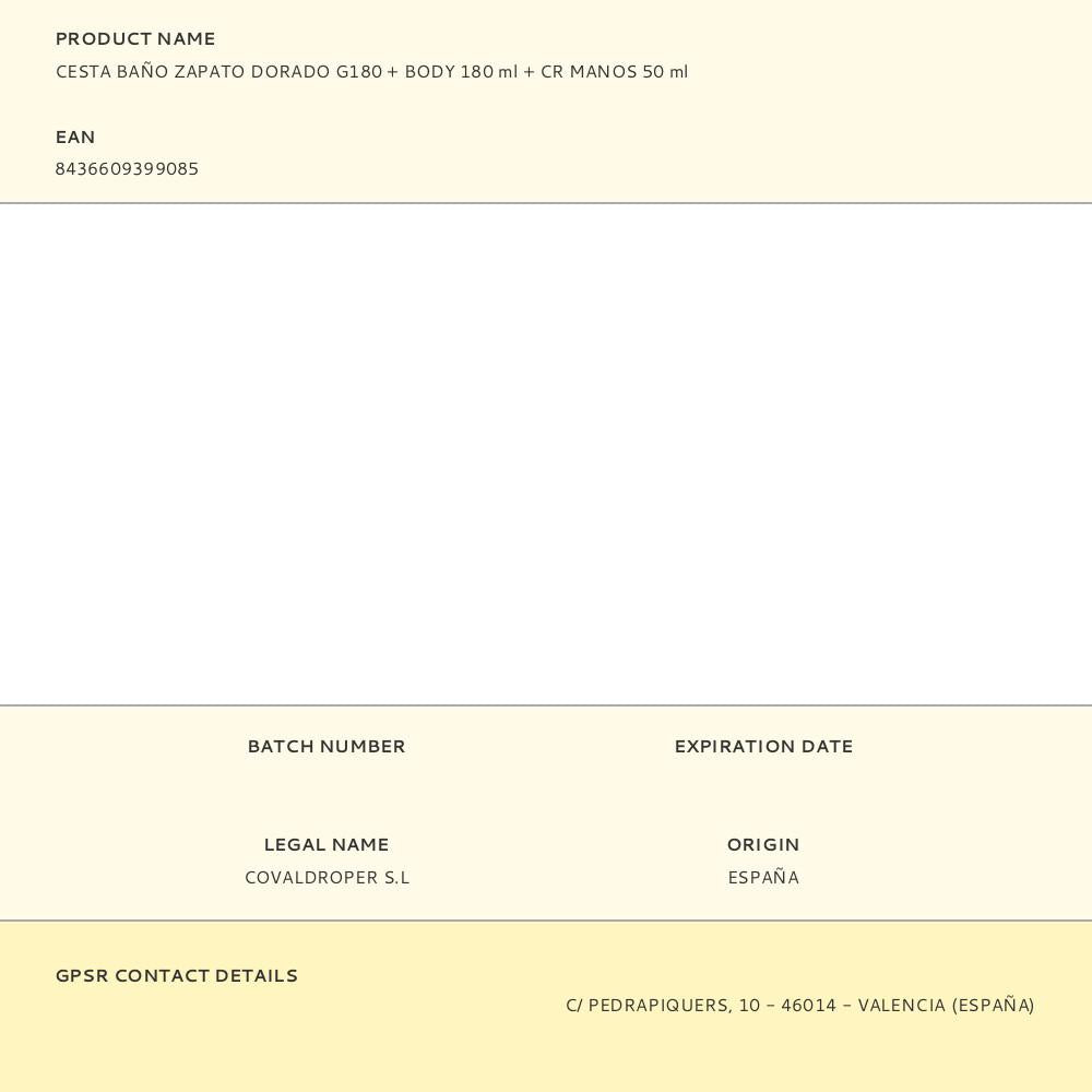 Cesta de casa de sapato dourado g180 + corpo 180 ml + mãos cr 50 ml