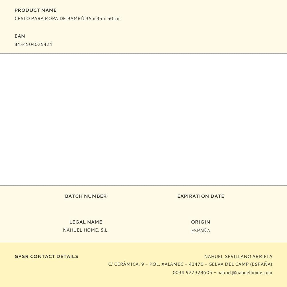 CESTO DA ROUPA BAMBU 35X35X50CM CAISON