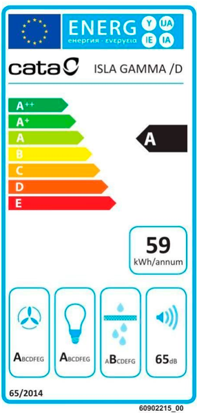 Capacidade de extração máxima – mínima (Reg.(UE) nº65/2014) 850 m3/h - 340 m3/h