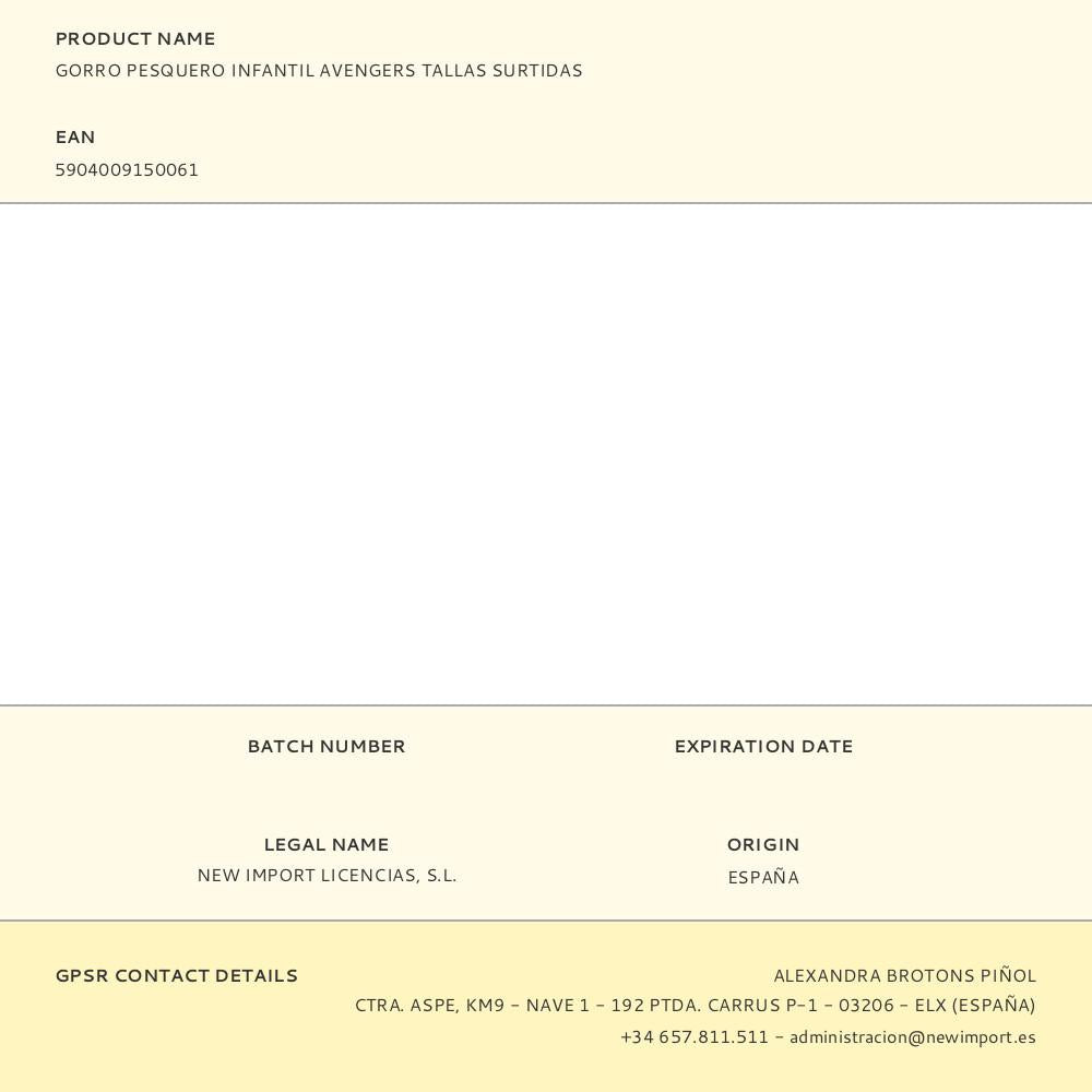 CHAPÉU INFANTIL AVENGERS TAMANHOS SORTIDOS