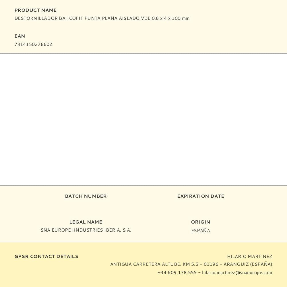 Chave de fendas de ponta plana isolada bahcofit vde com cabo multicomponentes. para trabalho em equipamentos de baixa tensão até 1000 v. tamanho: 0,8 x 4 x 100 mm