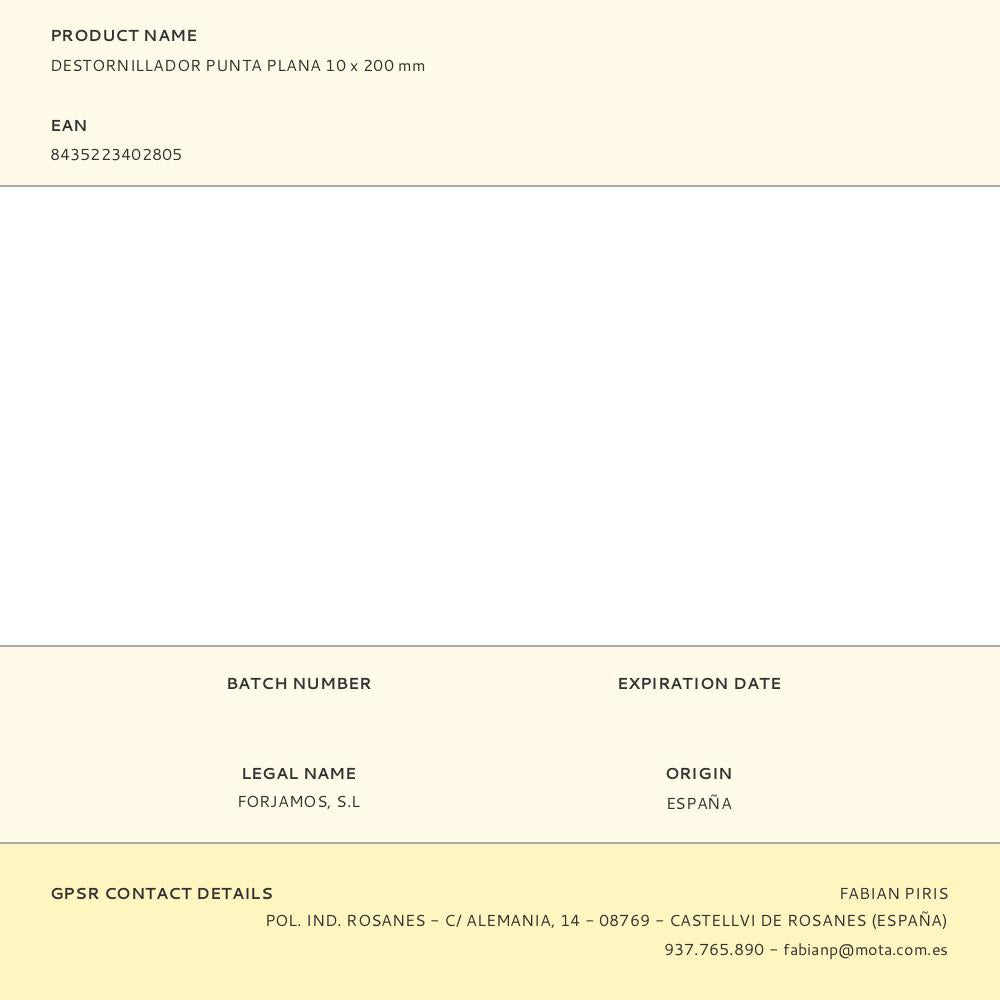 Chave de parafusos plano 10x200mm dpl1020 haste redonda mota