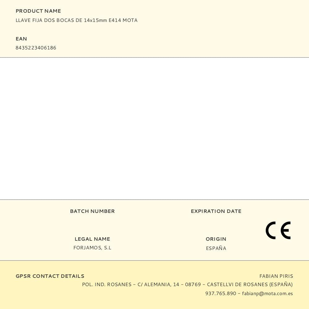 Chave fixa de 2 bocas de 14x15mm e414 mota