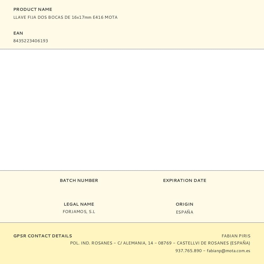 Chave fixa de 2 bocas de 16x17mm e416 mota