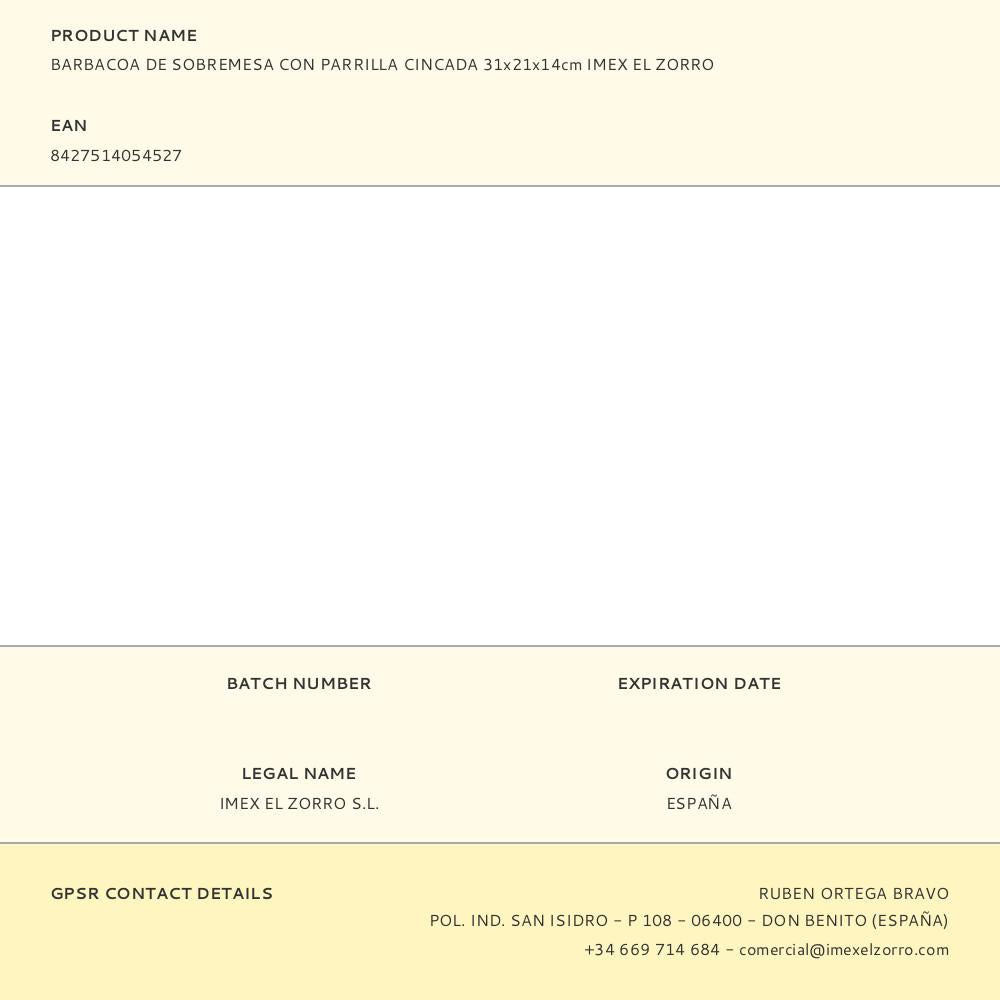Churrasqueira de mesa com grelha zinco 31x21x14cm (largura/profundidade/altura) churrasqueira metálica com pintura anticalorifica que aguenta até 800°c e grelha zinco. apta para lenha e carvão vegetal. imex el zorro