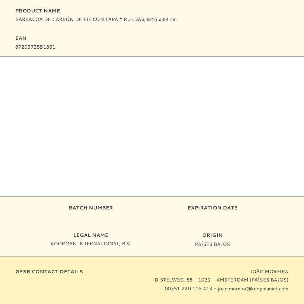 CHURRASQUEIRA DE PÉ A CARVÃO COM TAMPA E JANTES, Ø46 X 84 CM