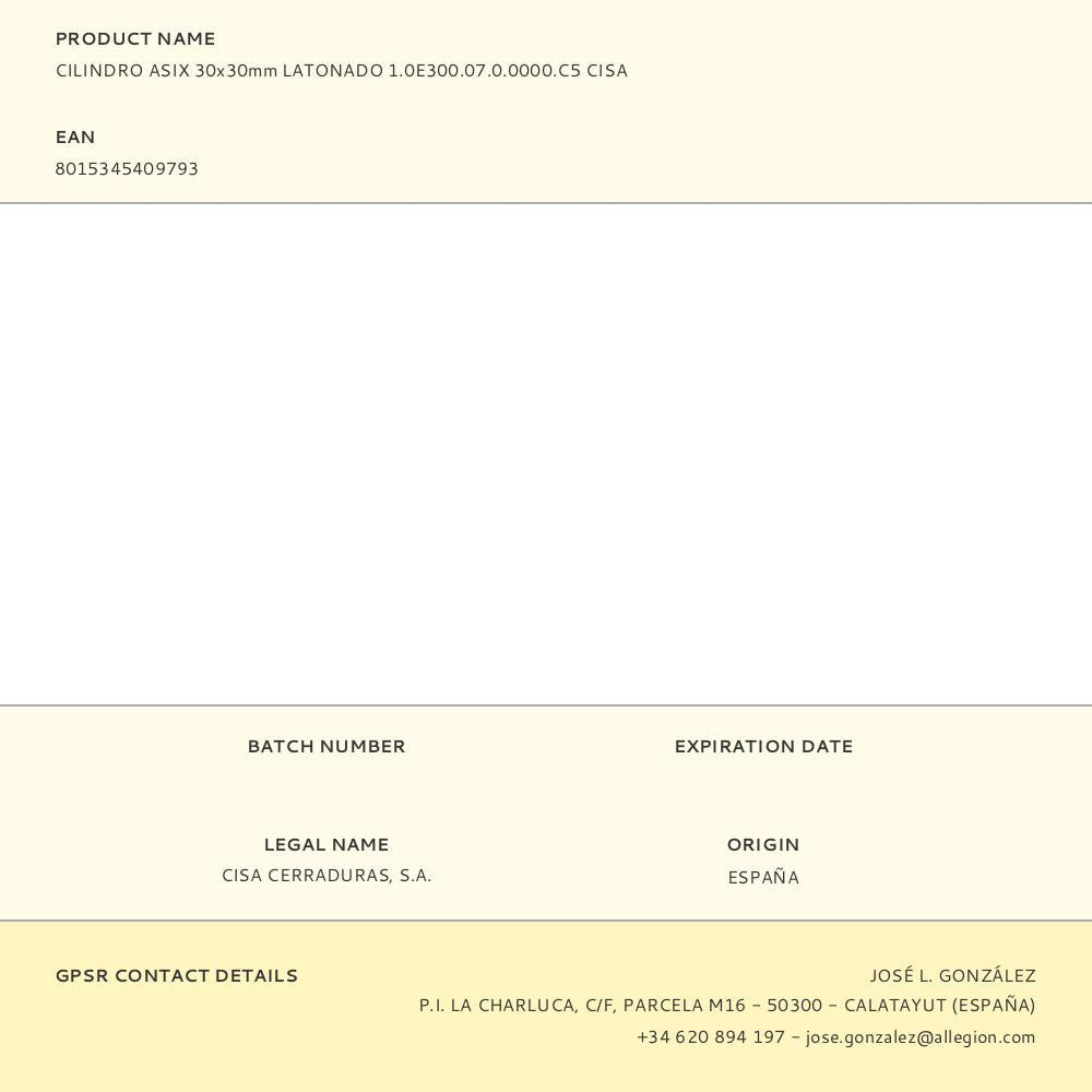 Cilindro asix 30x30mm latão 1.0e300.07.0.0000.c5 cisa. cilindro asix 30x30 latão com sistema de 5 pistons e contra pistons com 5 chaves reversíveis de pontos