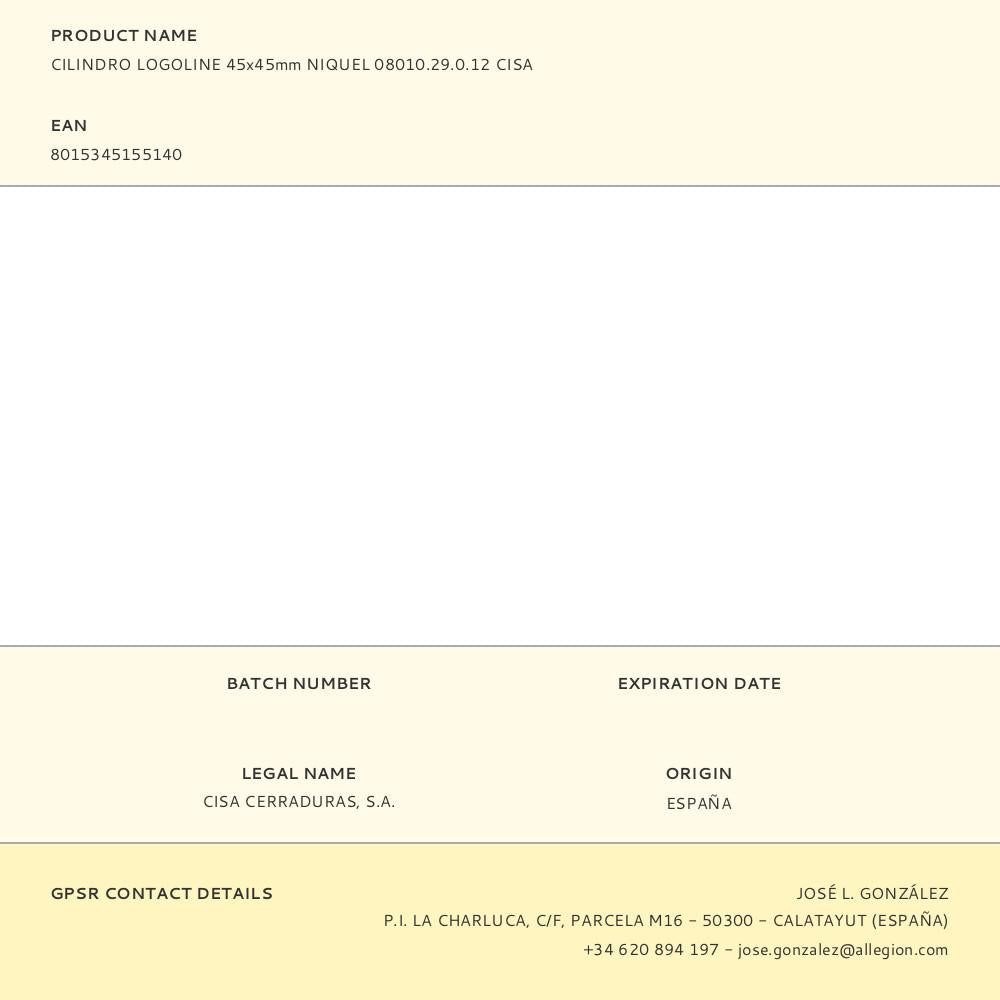 CILINDRO LOGOLINE 45X45MM NIQUEL 08010.29.0.12 CISA