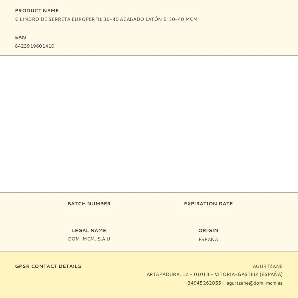 Cilindro serreta europerfil 30-40 acabamento latão e-30-40 mcm. o cilindro europerfil e contém uma vasta gama de tamanhos e formatos diferentes: meio cilindro, cilindro com botão, tanto curto como longo, cilindro para caixa de correio, cilindro para portas anti-pânico e modelo elétrico para elevadores e garagens. contém 3 chaves serreta