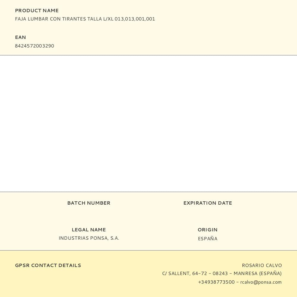 CINTO LOMBAR COM SUSPENSÓRIOS L/XL 013,013,001,001 PONSA