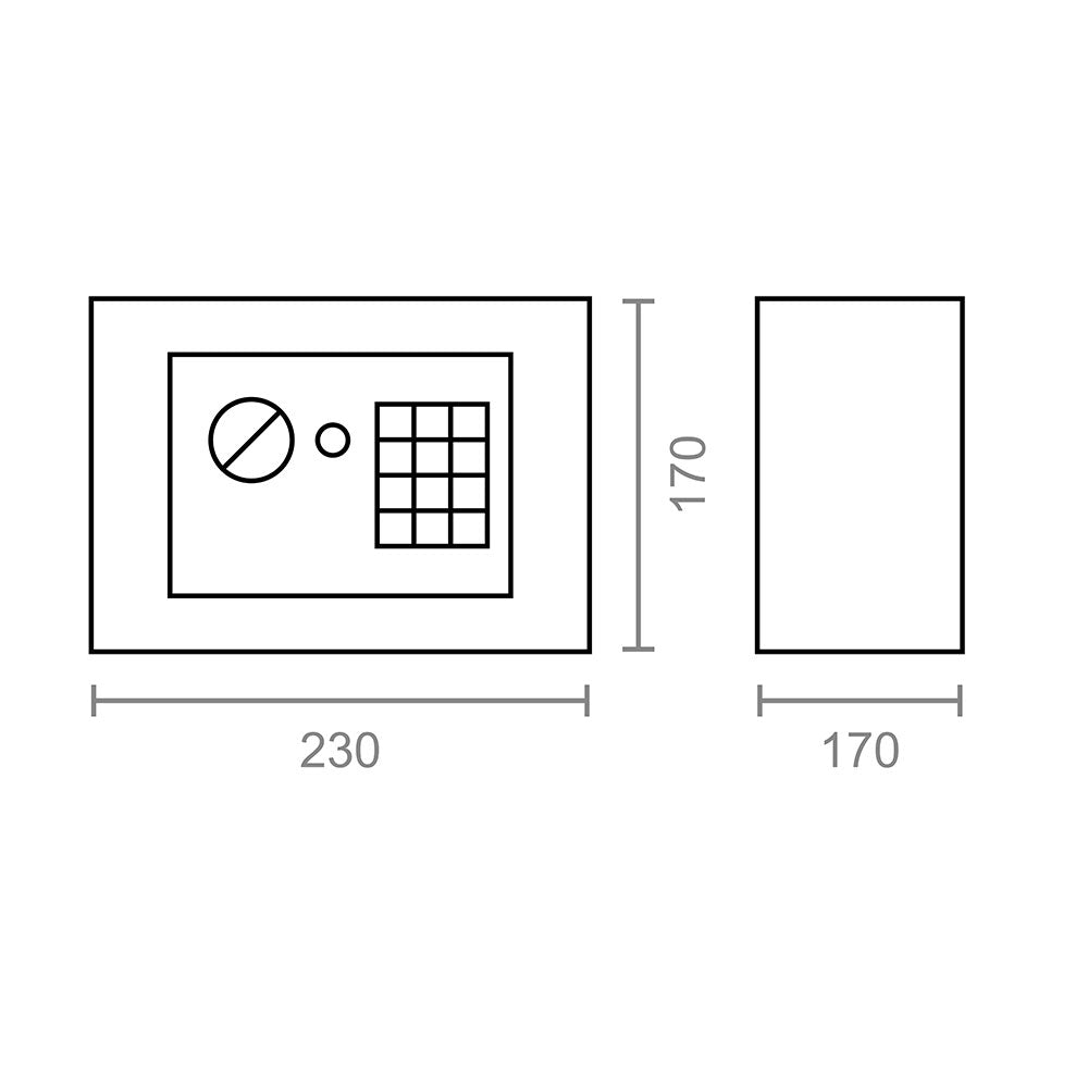 Cofre eletrónico cfc03 com combinação numérica (pin de 3 a 8 dígitos) e chave de abertura de emergência. material em aço (corpo de 3 mm - porta de 1 mm). inclui 4 pilhas aa, 2 chaves borja. cor preta. dimensões: 23 x 17 x 17 cm