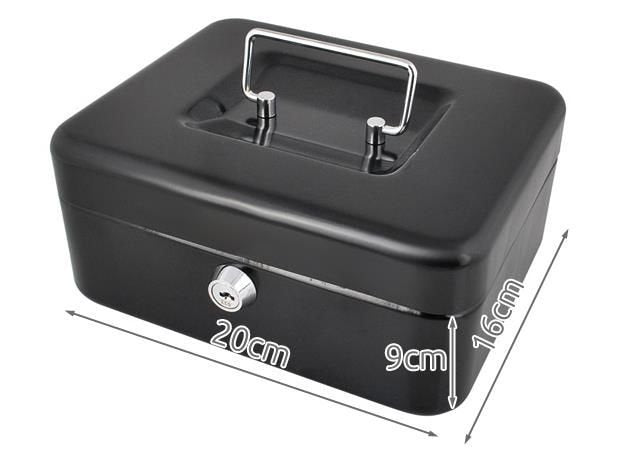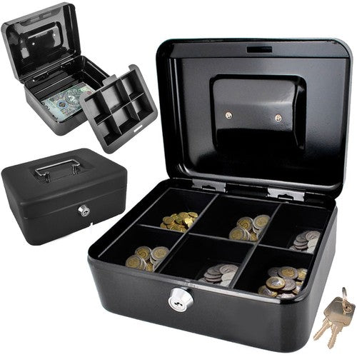 COFRE METAL PRETO COM BANDEJA PARA MOEDAS