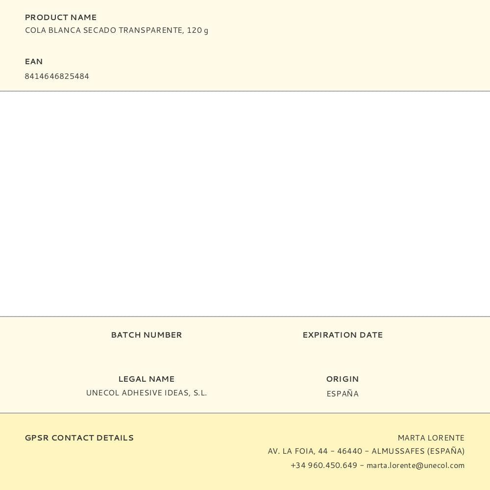 COLA BRANCA SECA TRANSPARENTE, 120G