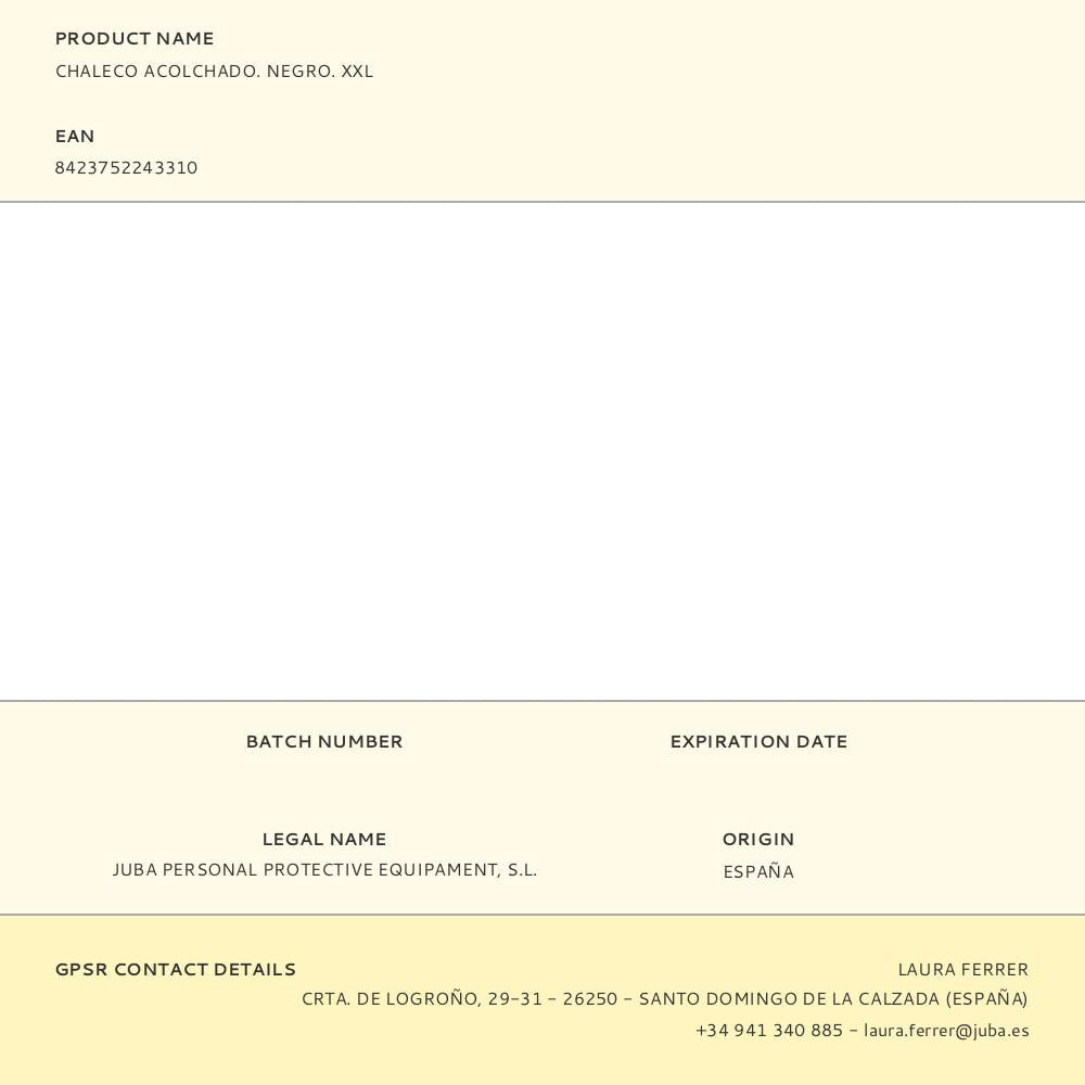 COLETE ACOLCHOADO. PRETO. XL. JUBA