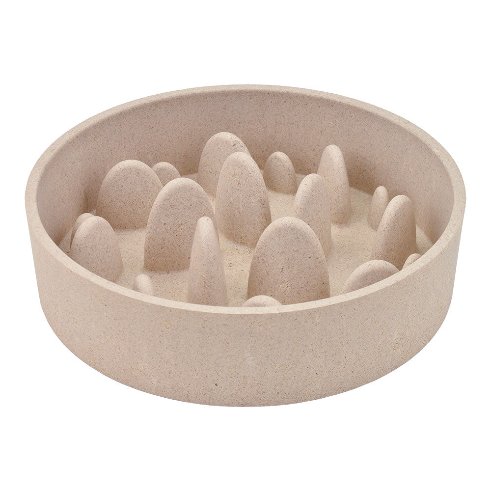 Comedouro de alimentação lenta concebido para que o cão demore mais tempo a comer e assim acalmar a ansiedade e melhorar a digestão. composto por 50% bambu e com base antiderrapante. cor bege. capacidade: 1430 ml, dimensões: ø21,5 x 21,5 x 6 cm