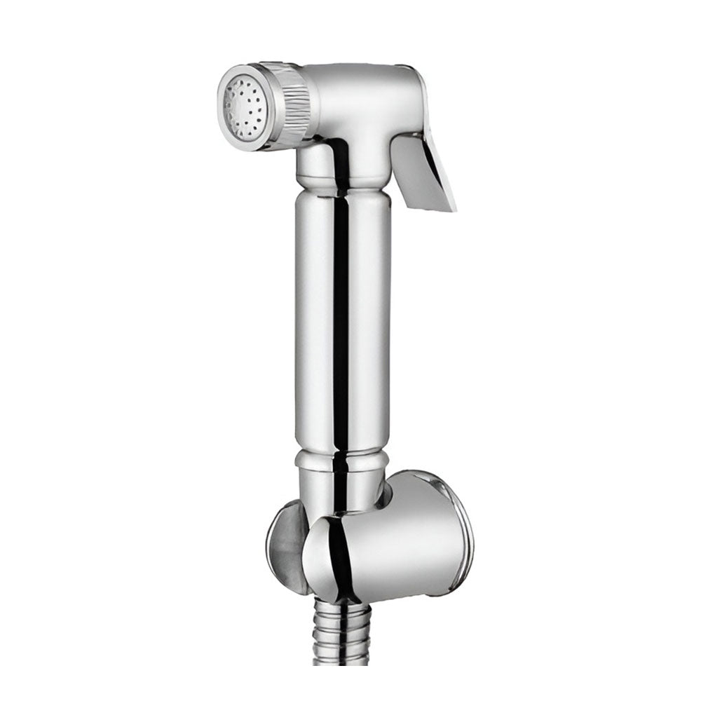 Conjunto sanitário. manete fabricado em latão. tubo flexível em aço inoxidável 1,2 m. suporte metálico em zinco com acabamento inox