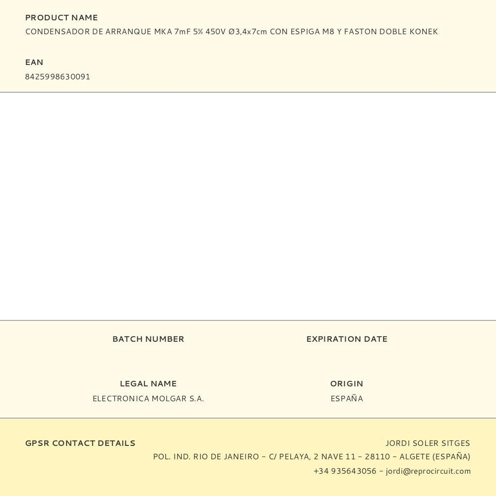 CONDENSADOR DE ARRANQUE MKA 7MF 5% 450V Ø3,4X7CM COM ROSCA M8 E F